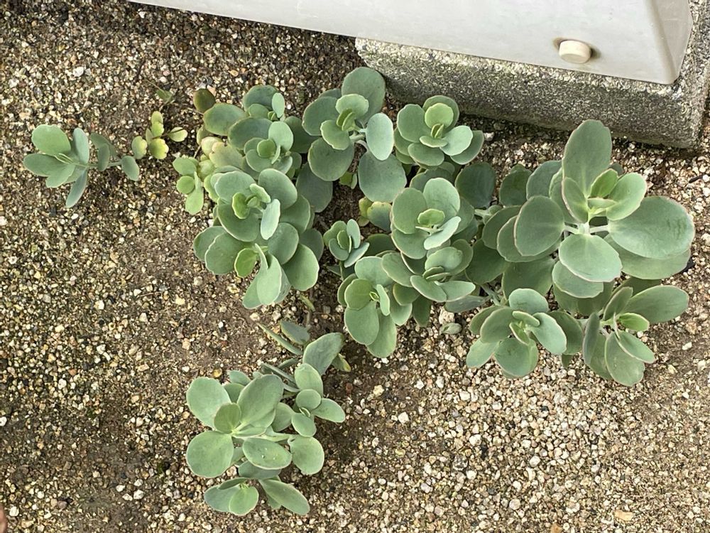 以前 庭に親株ちゃんの鉢を置いてるときに、葉っぱが落ちて 硬い地面で育ってるのを 去年9/22 📕3枚め に載せましたが、ますます元気になってます🌱