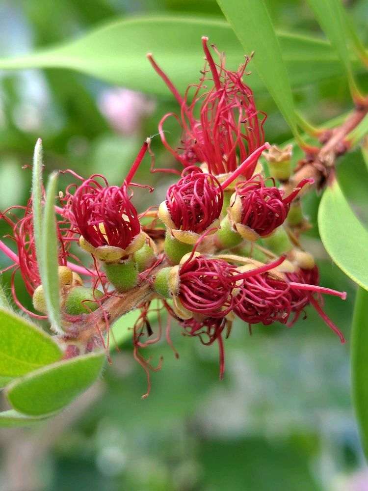 ①②ブラシの木…四季咲きもあるようですね〜もじゃもじゃとした雄しべが広がる様子が分かります😳