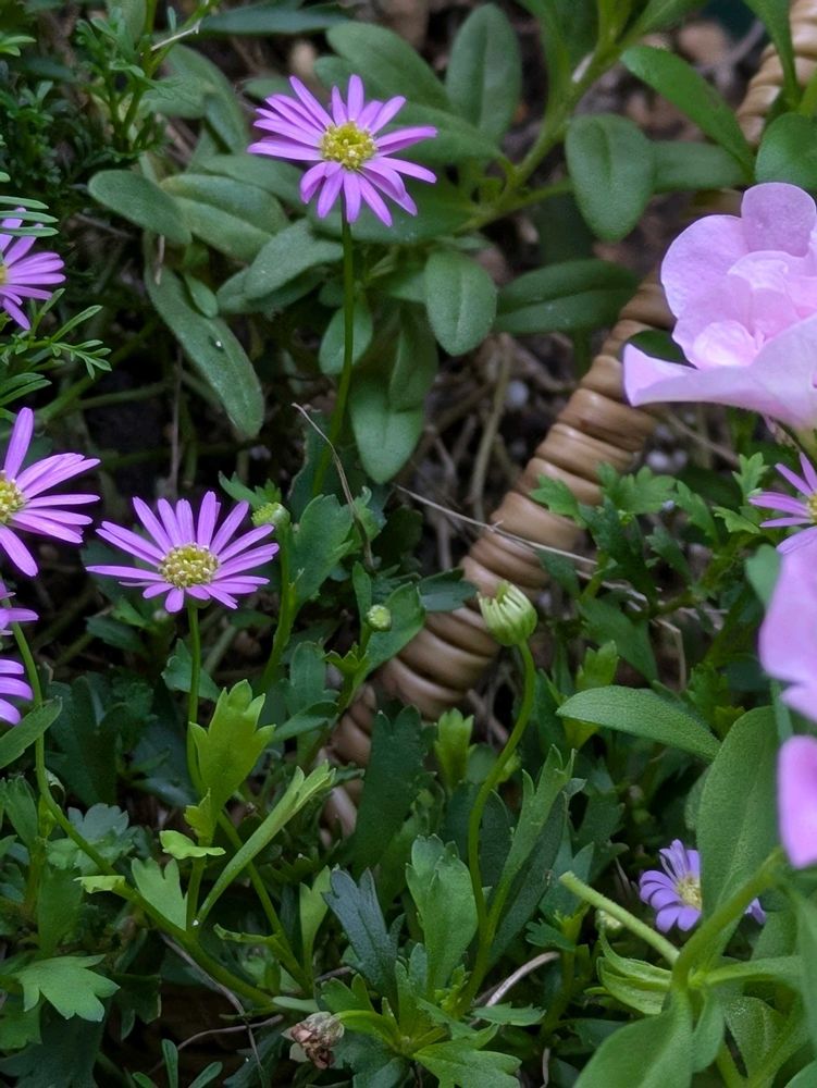 春の寄せ植えを夏の間放置をしてましたら八重咲きカリブラコアと星空マムが咲き始め思わずパチリ📸✨