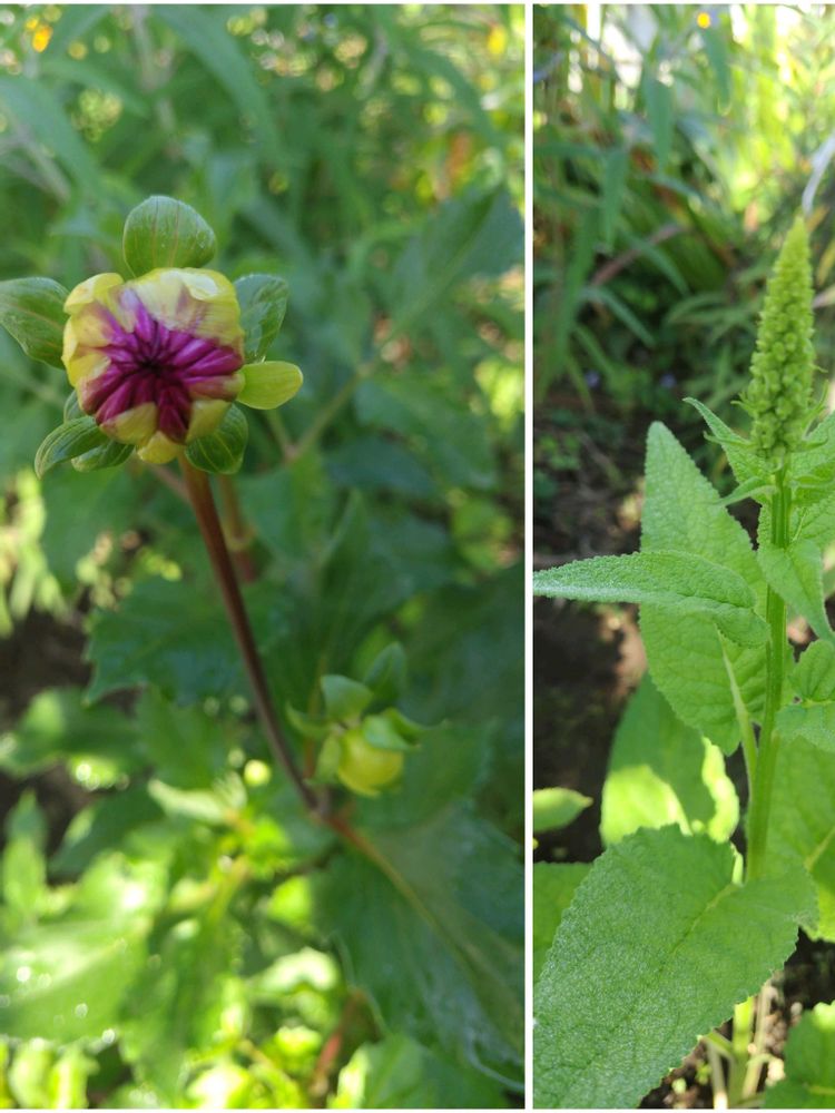 そのすぐ隣りに、白いダリア🤍を植えたつもりが、蕾はどう見ても赤いダリアです😲💦(よくあるミス😂)