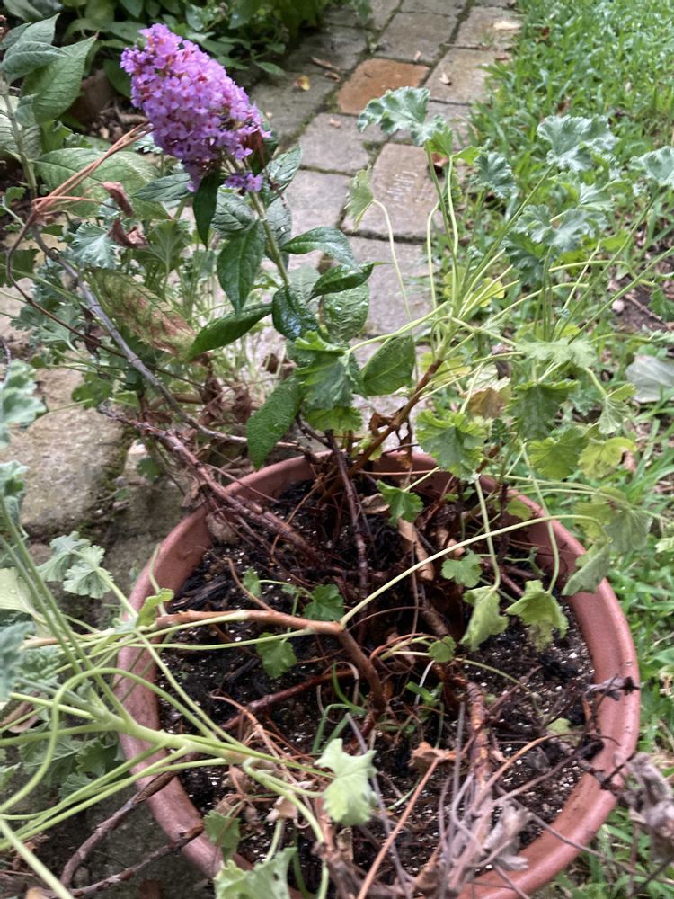 夏の間(まだまだ夏っぽいですが)野放図にほっていたセンテッドゼラニウムの鉢から、ブッドレア パグスターピンカーがひとり生え。さし木した覚えがなくて、種から?そんなことある?