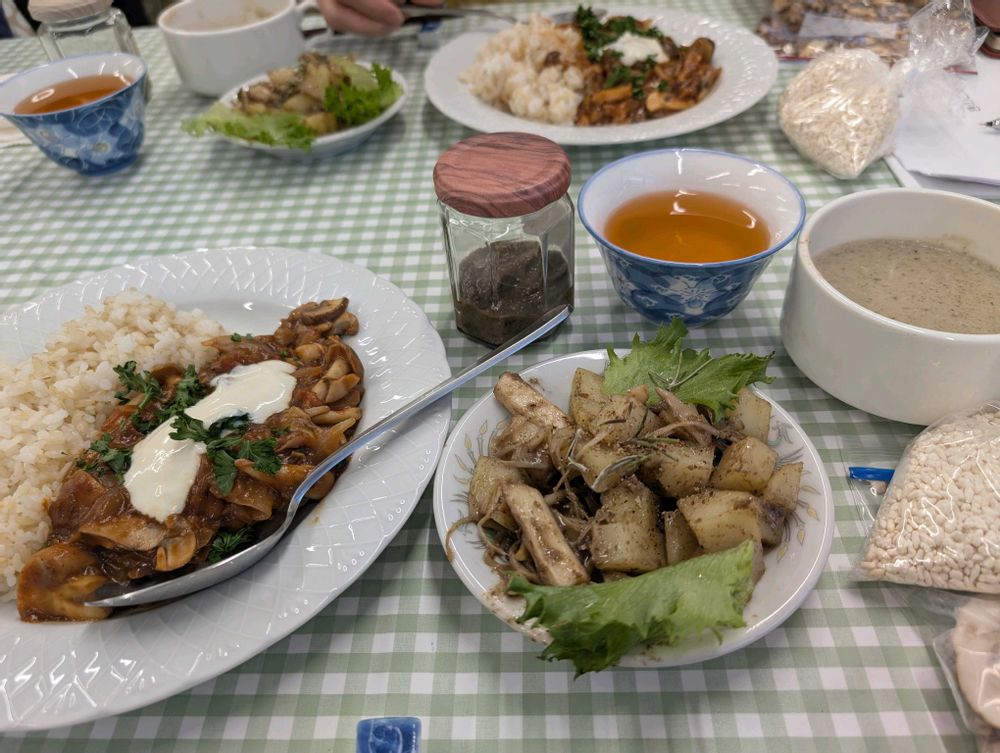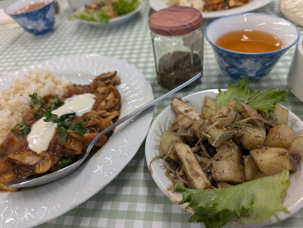 季節の発酵ごはん🍚の講座を受講しました🧑🍳きのこ麹でハヤシライスψ(´ڡ`♡) "オイシ﹏ ♬*豊田産業文化センターにアメリカンブルー💙が咲いていました~♬♬▶️