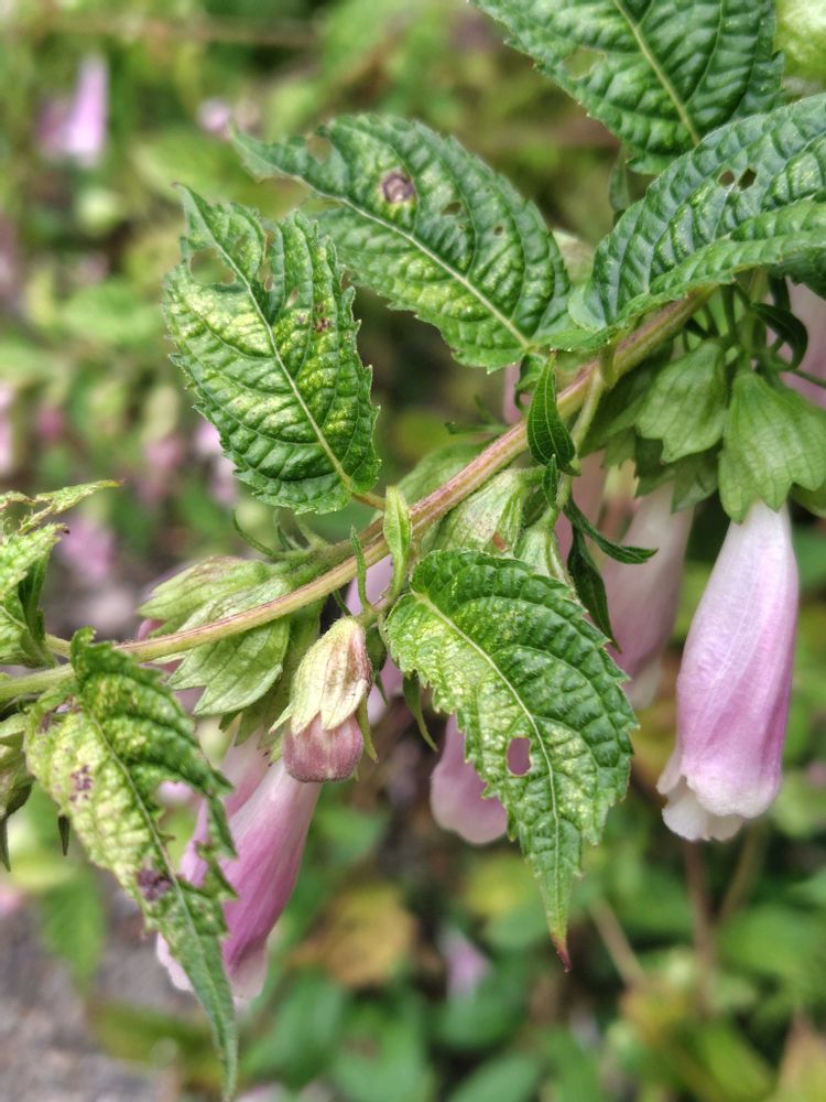 萼は緑色で鐘形、花時は長さ10〜15mm、果時は長さ15〜18mmになり、球卵形になる。