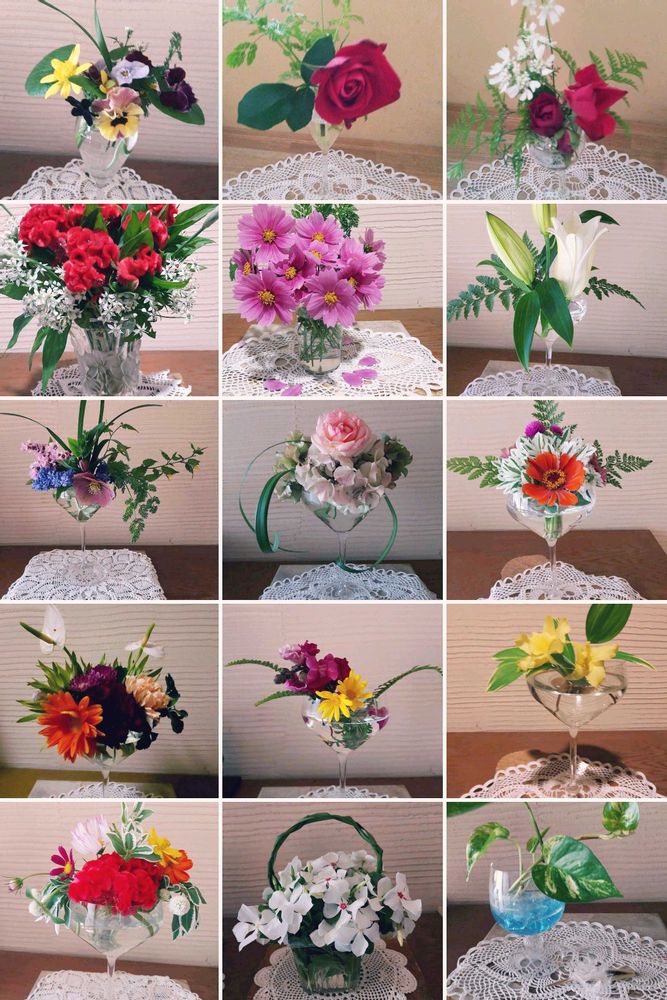 過去に グラス🍷や花瓶に生けたお花のコラージュです。💐