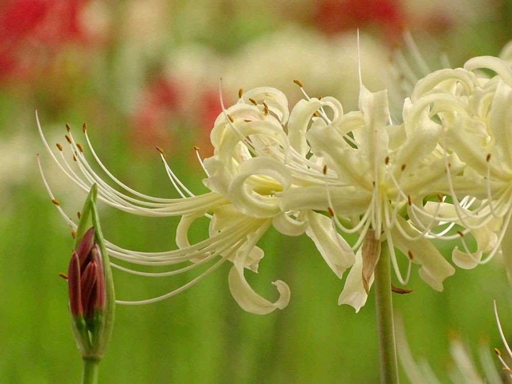 何故か?白い曼珠沙華に赤い姿もチラリ~