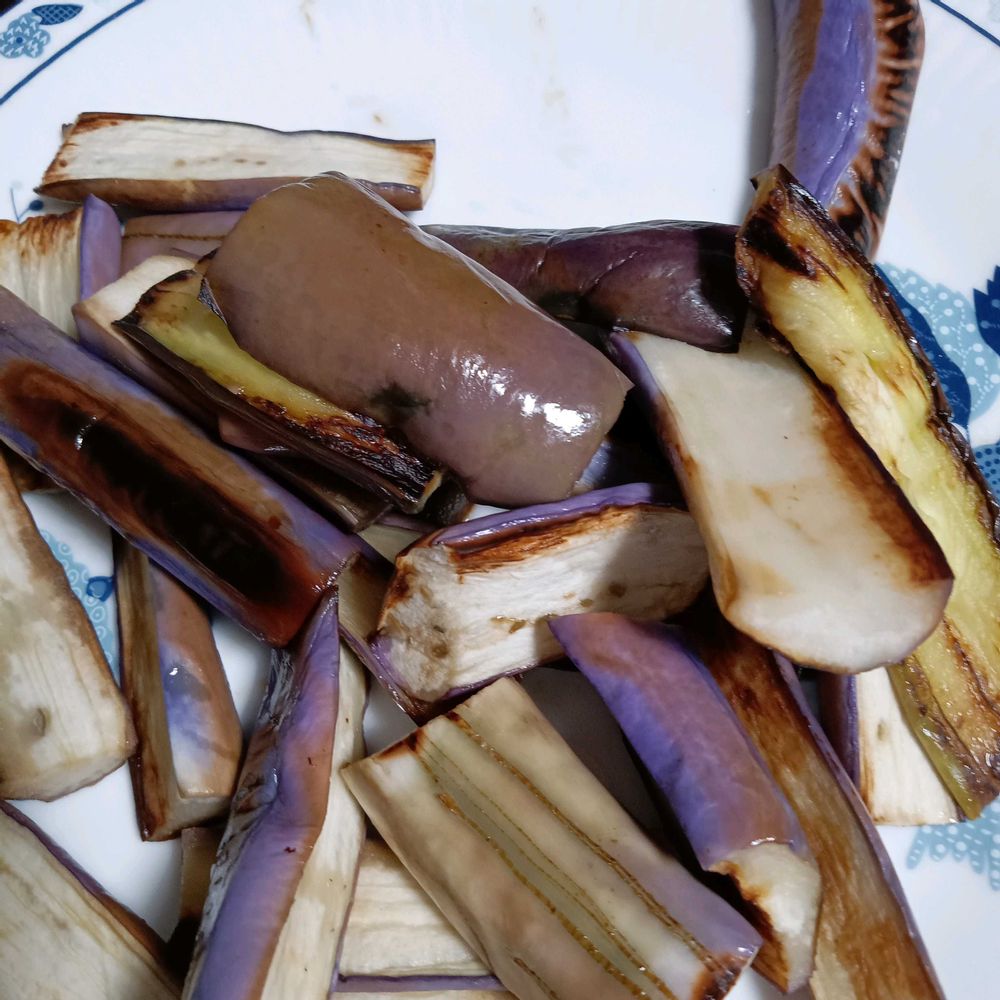 4️⃣ナスも大量に収穫したので焼きナスと煮浸しとレンジナス🍆で作り置きしました。