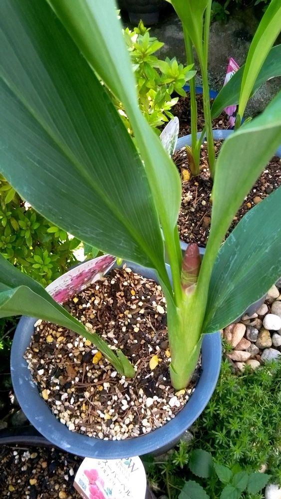 花がなくなっていた「クルクマ(パープル)」ですが、小さいながらも花芽がついてきました。🥰