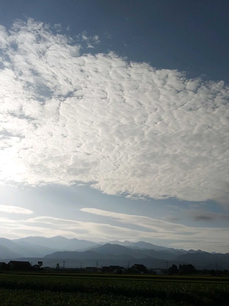 ⑤ 今朝見た青空と☁️とお⛰️⛰️⛰️