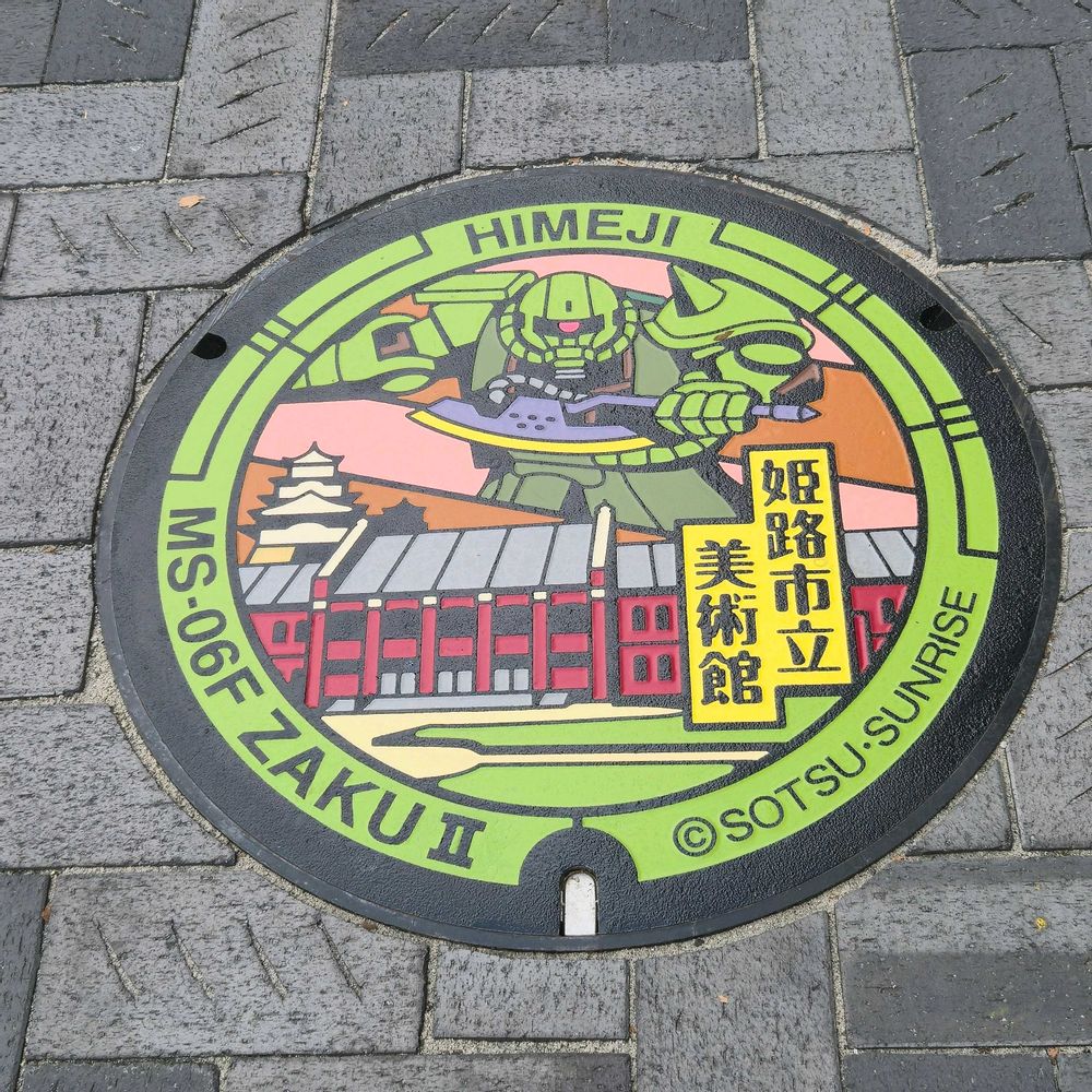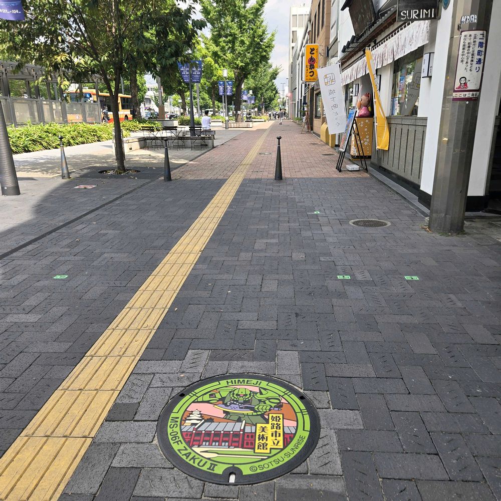 姫路駅からお城へのメインストリート大手前通りにガンダムマンホール蓋が最近設置されました。