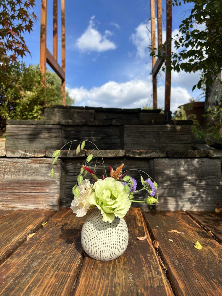 おふたりの思い出と友情に想いを寄せて、小さなお花を生けました。供花でもあり、お祝いのお花でもあります。