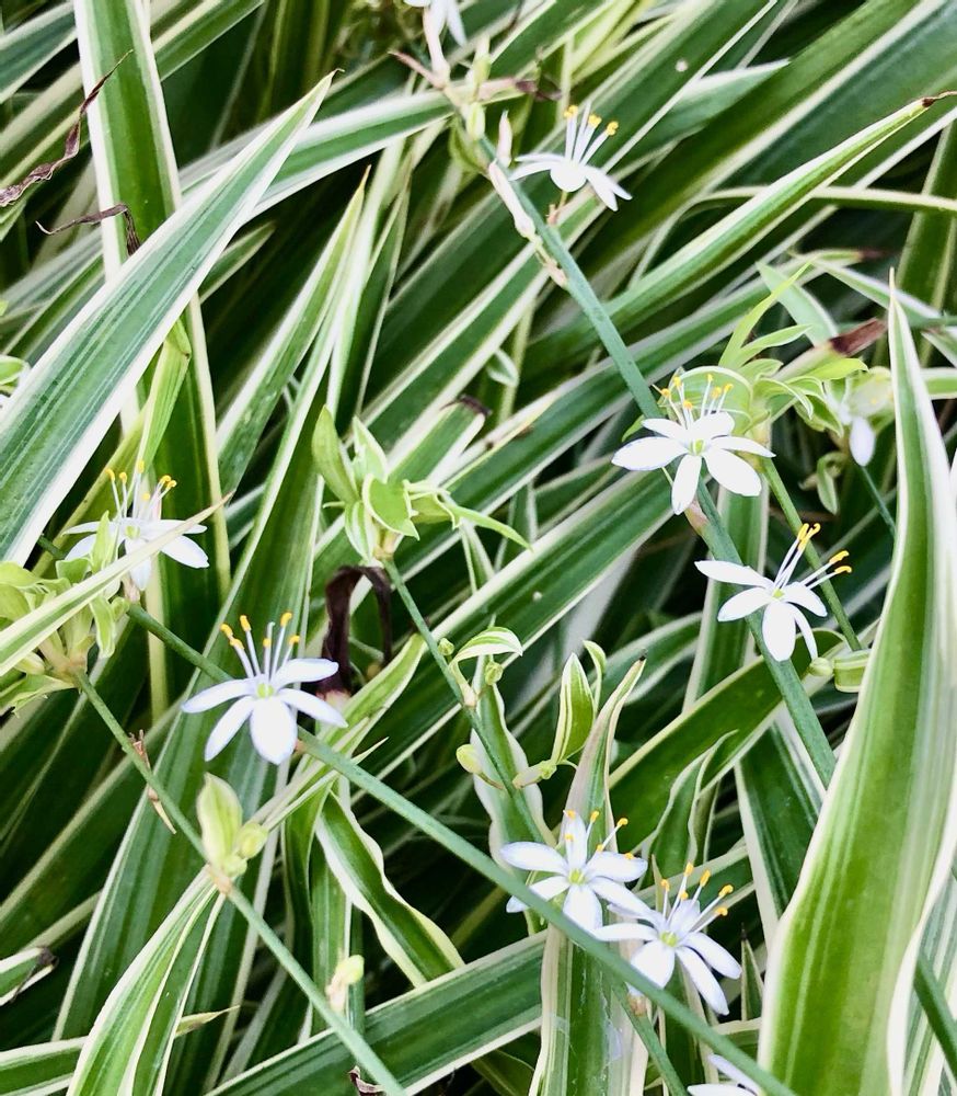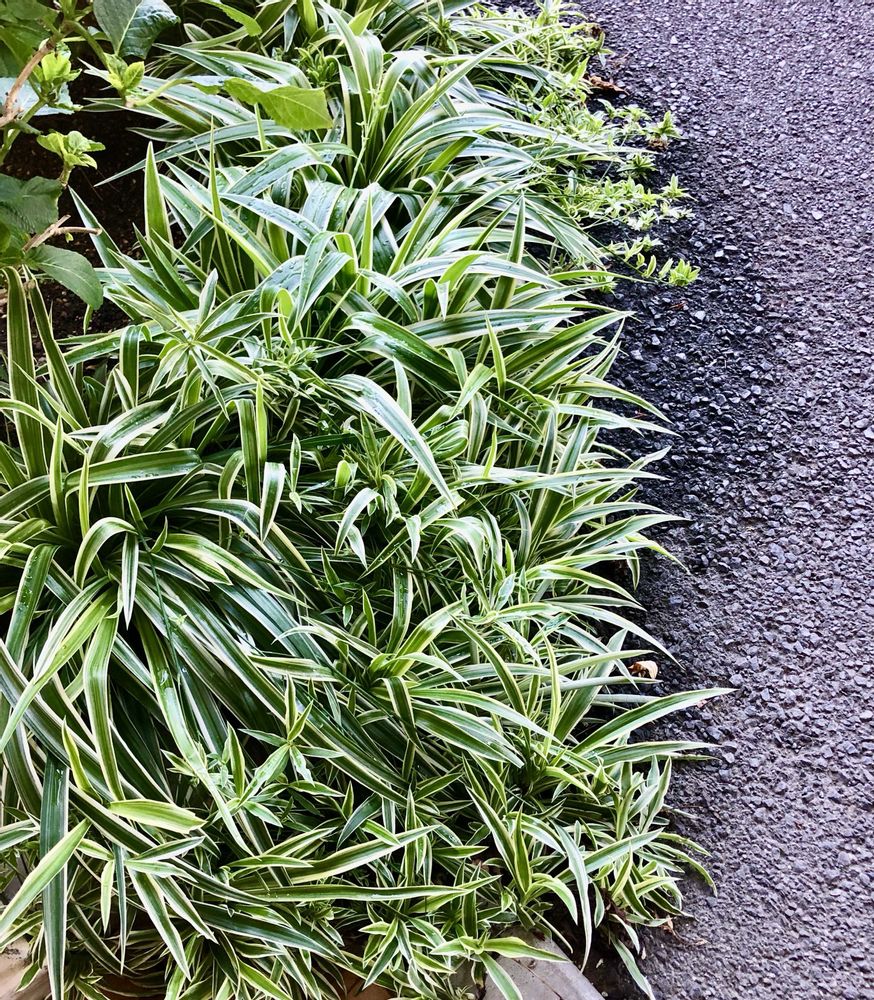 日当たりの良い場所から日当たりの少ない場所(鬼門)にオリヅルランを植え替えましました『昨年』。その鬼門の場所のオリヅルランが何故か、元気モリモリになってお花も咲かせ、大株となって、子株も増えてきました。適材適所⁇