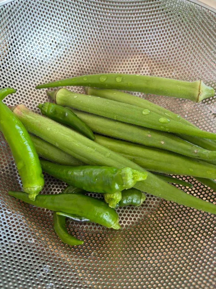 ↘️ ザルにあけたところ 美味しそうでしょう🥰エメラルドオクラというだけあって綺麗な薄い緑です💚