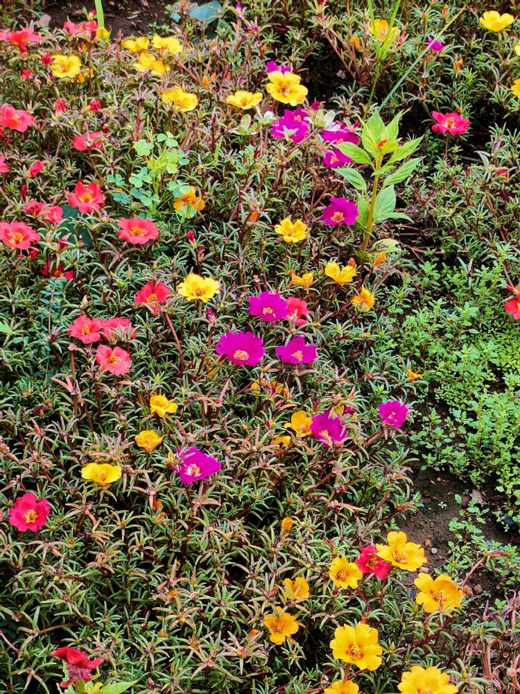 野良マツバボタンと化して、チューリップやスイセンが咲いていた部分がマツバボタンとケイトウでいっぱいになっていました。