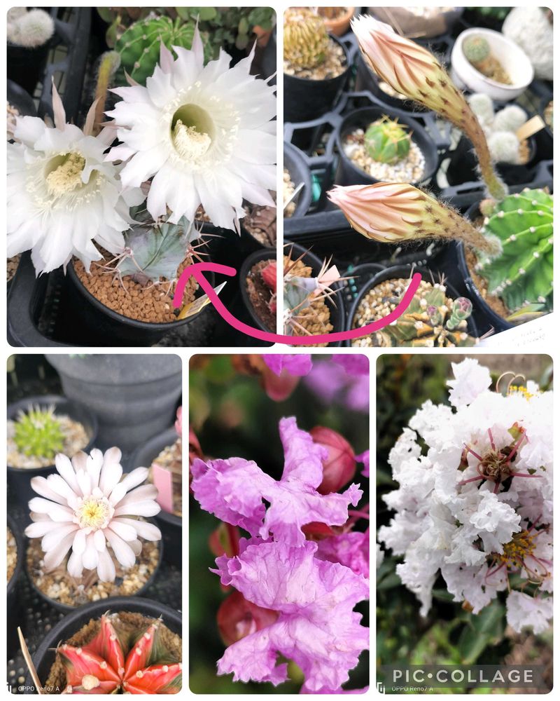 2枚目サボちゃんと去年植えたサルスベリ🤍と🩷細々と咲いてくれてます🤗カワイイ