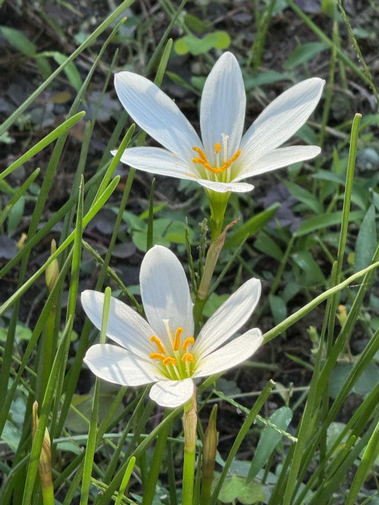 病院へ歩いて行く途中 タマスダレの白い花が日に照らされて綺麗でした✨