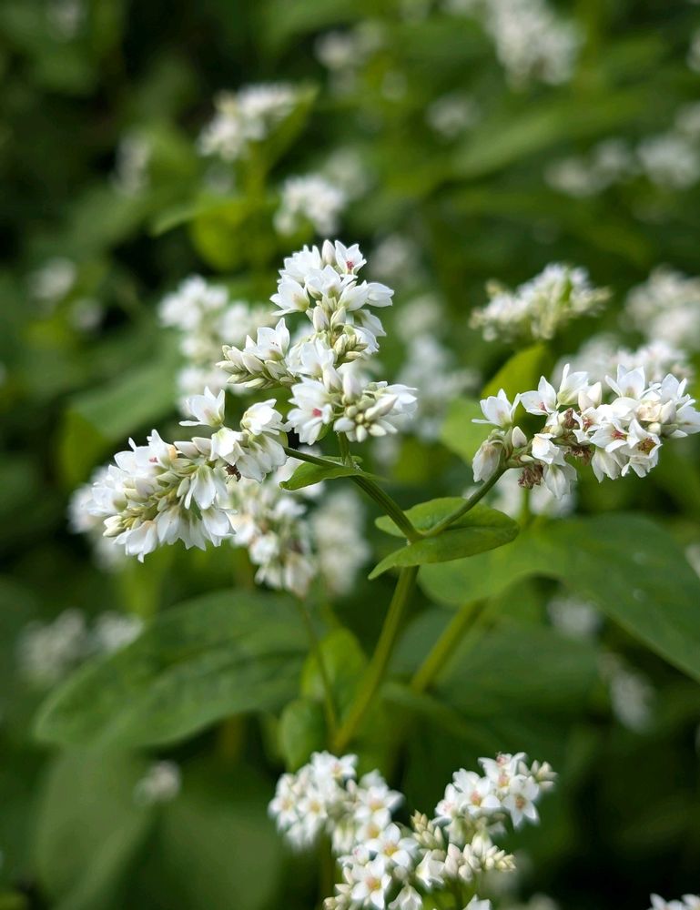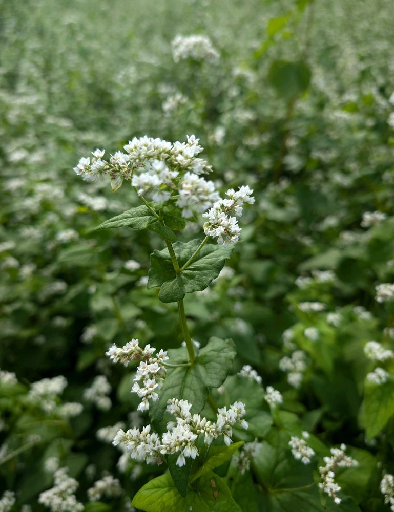 今年は少し遅れて咲き出した蕎麦と良い香りの玉の簪白い花です