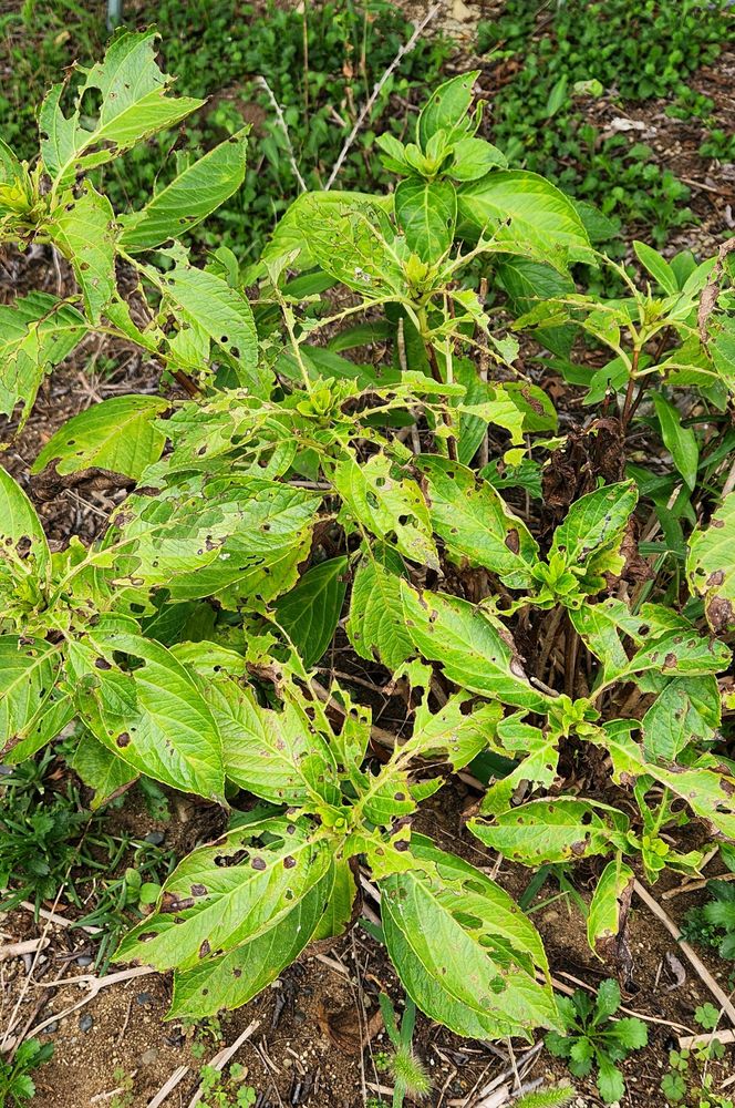 アジサイの葉っぱ🌿ってこんなに食べられてしまうのですね〜⁉️
