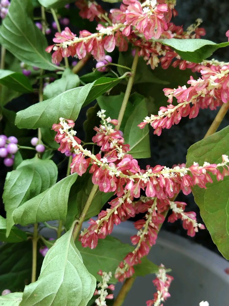 イタドリの赤花すごく赤🟥色ですねー🩷。名月草と名前が付いてますが、中々無いものです。大事にして下さいな❗️。やまも今日gsしましたーが未だ桃色ですねー。ワンちゃん🐶元気そうでなによりです。またねー。!。