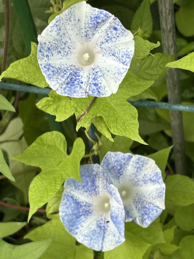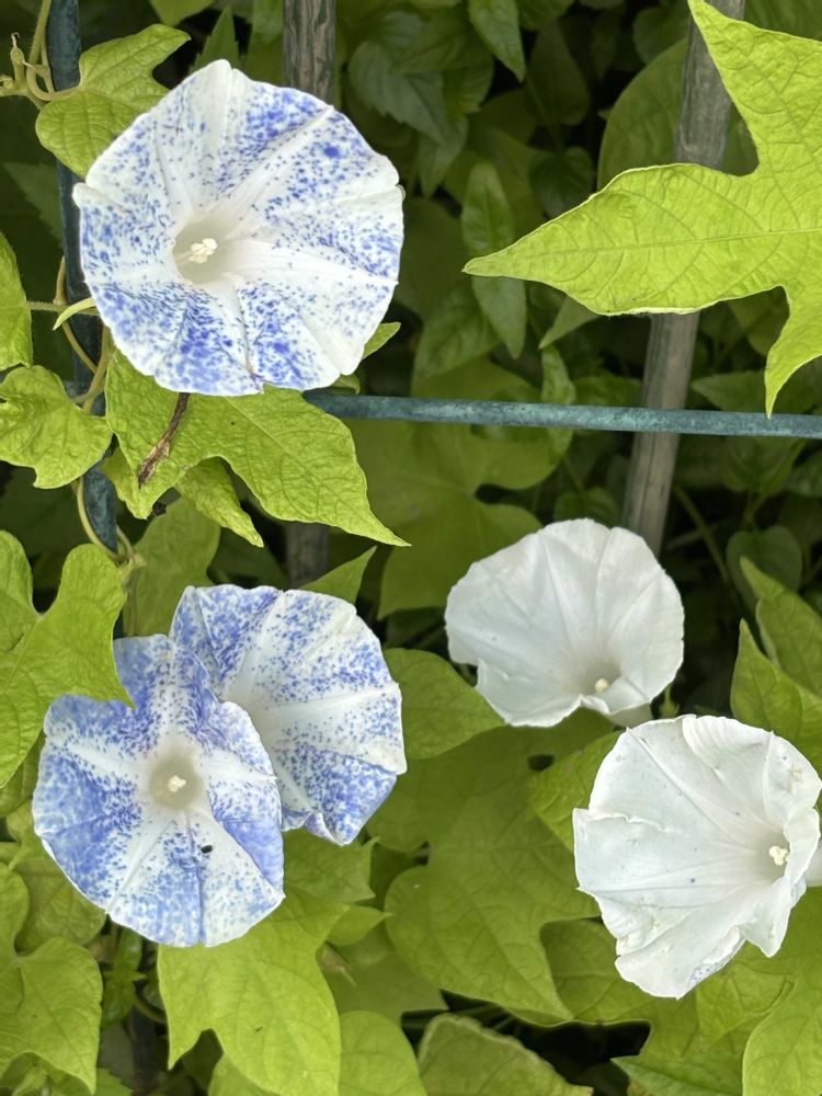吹き掛け朝顔も薄墨色の朝顔も突然変異なのか、今まで我が家の種まきしたのからは、ありませんでした😌