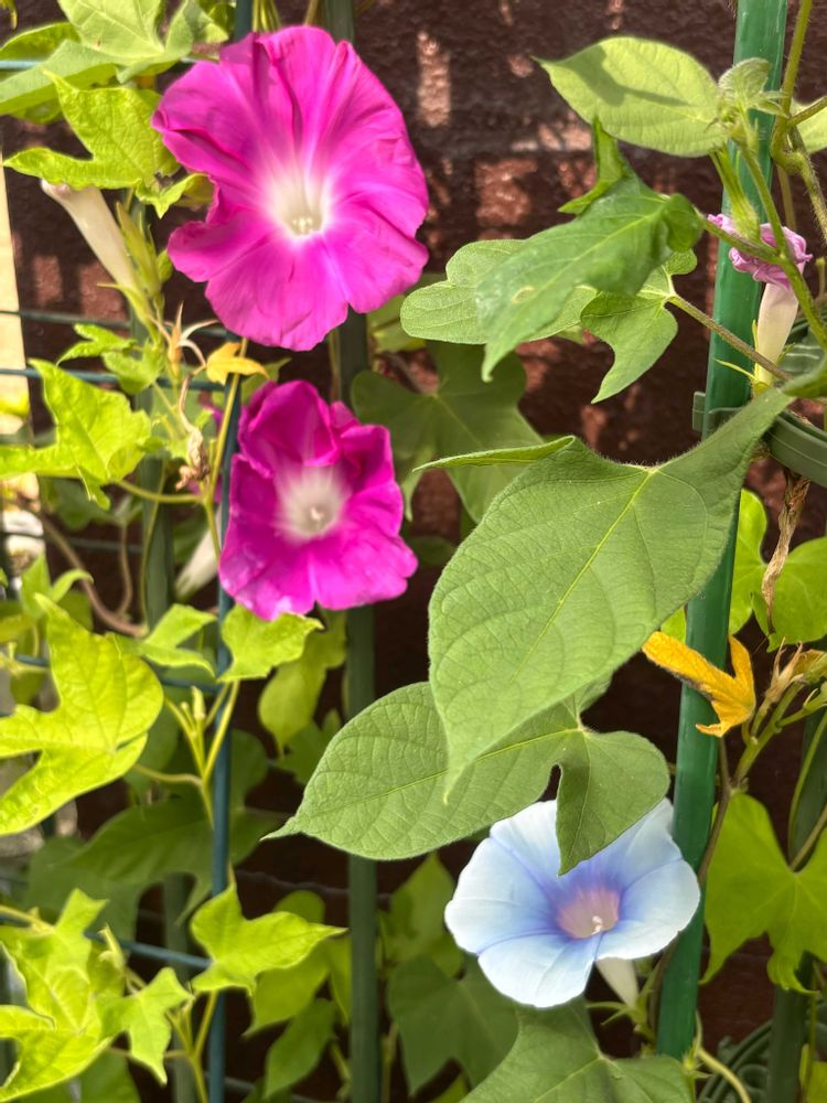 この朝顔は、数株入ってるけど、花色は一色なので種採り楽チン🥰
