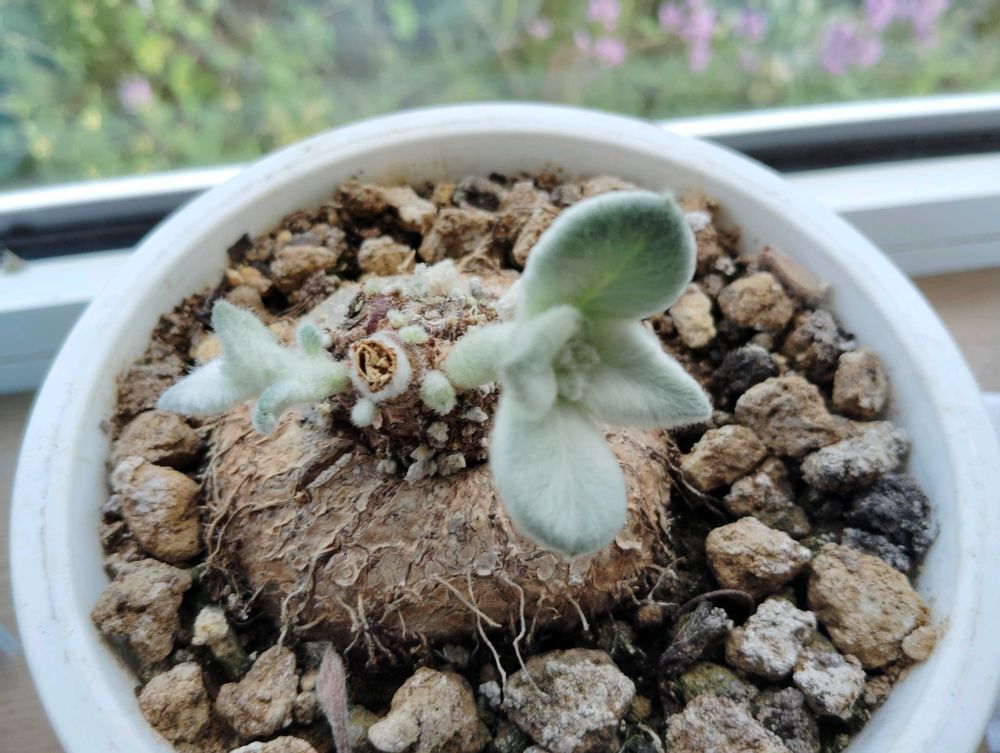 日光不足で茎がヒョロヒョロしてますけど、塊根2センチくらいになってます。