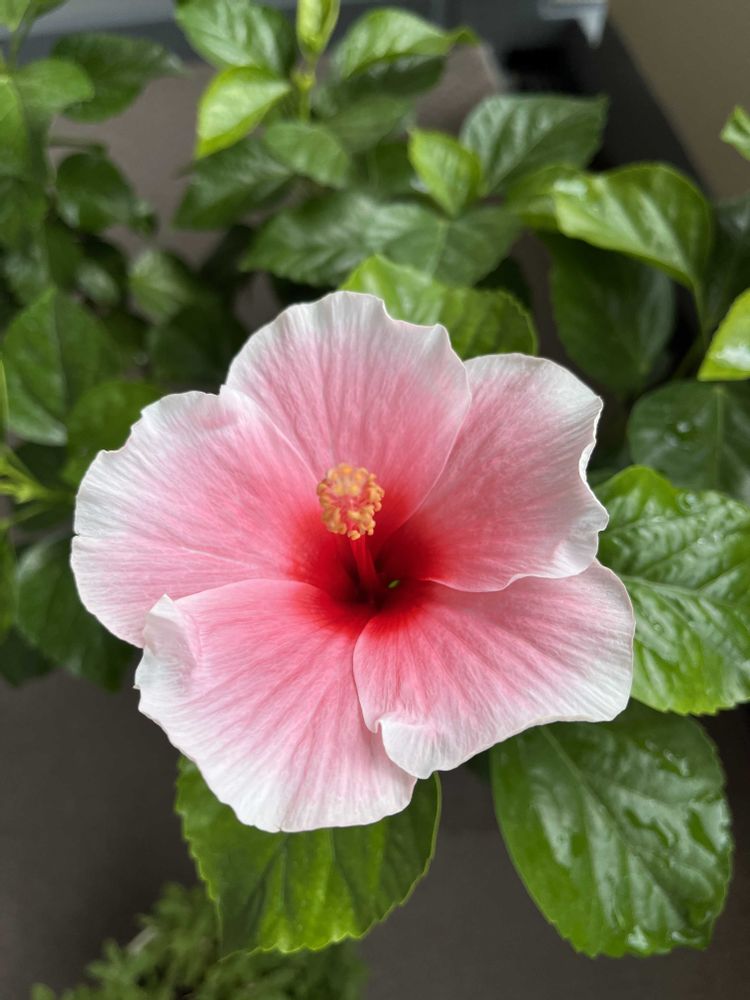 ハイビスカスグレイス3🌺綺麗に咲きましたね〜😃👏👏久しぶりに咲いてくれると喜び大きいよね😃💕葉っぱも元気だね🌿👍
