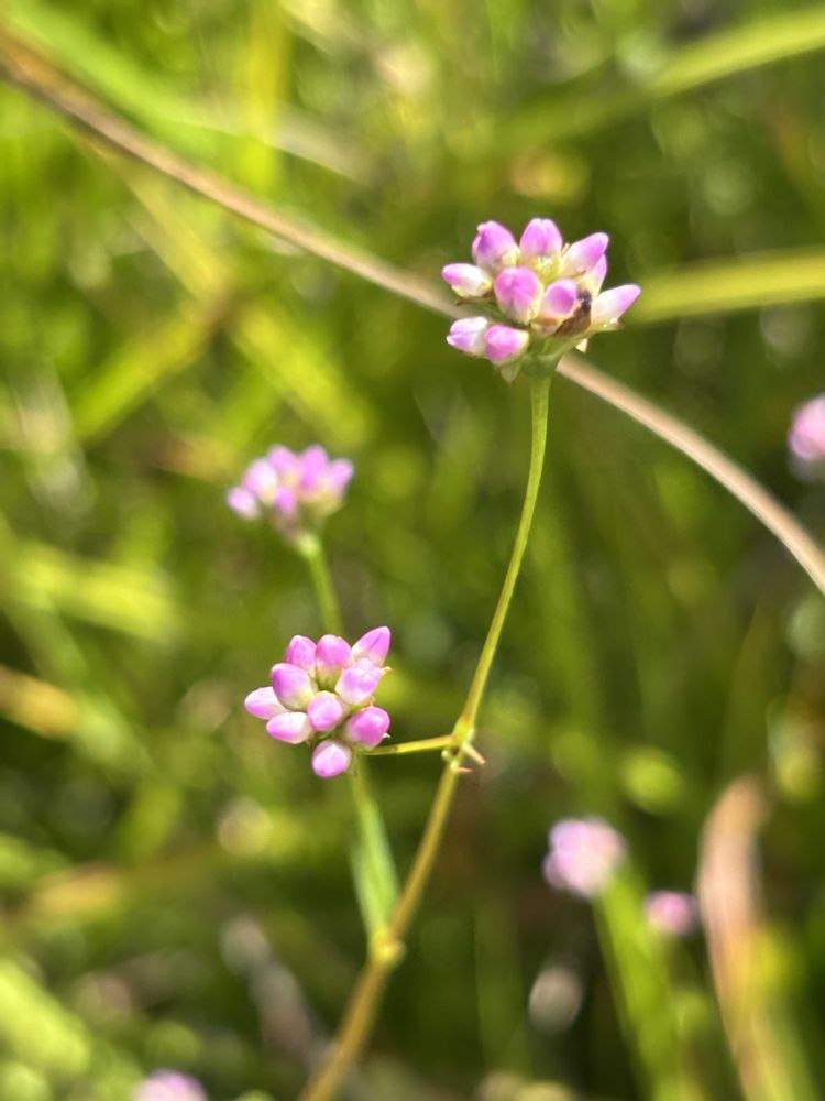 ③すぐ隣のウナギツカミの茎を触るとザラザラしないので、はて?と思って葉っぱをよく見たら、牛の額🐮の形!ミゾソバでした。花はそっくりなのですが、花だけで識別できるものなんでしょうか?