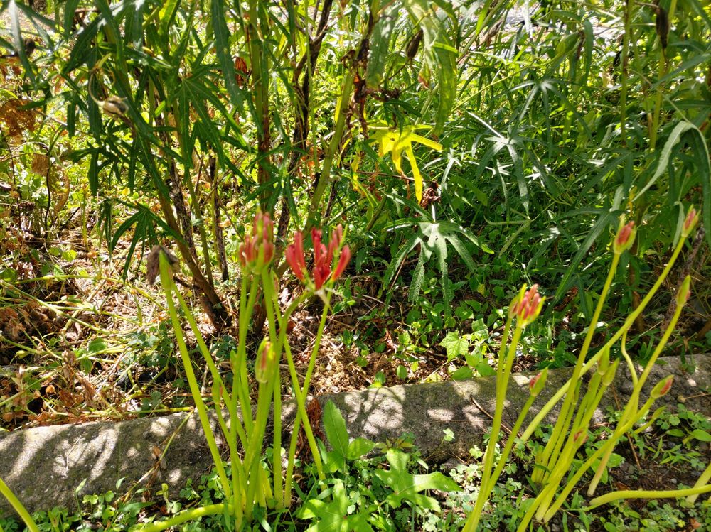 ガ―デン仲間で私共が畑借りてるご主人の畑道路沿いに、彼岸花が長く蕾を付けて咲き出しそうでした!