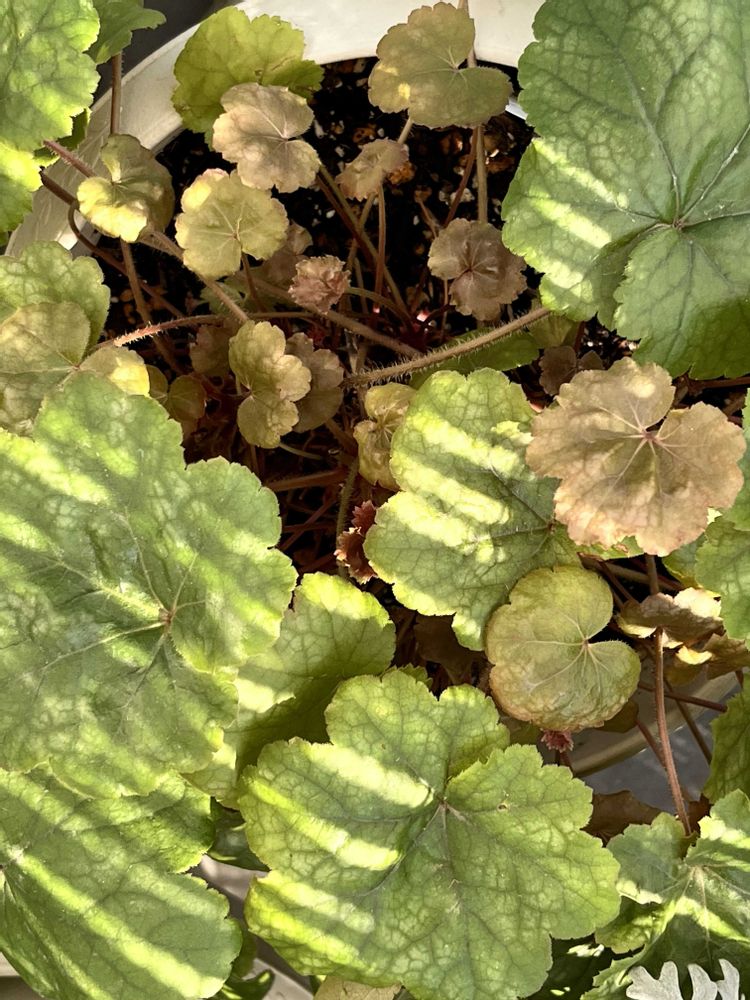 2️⃣PWヒューケラドルチェメープルファッジ😄育てて、もうすぐ3年になります❣️中に新しい葉が次々と出てきました😆 3️⃣ベランダで夏越しした葉牡丹👀 このままか💦どう手入れしたらいいのか😅様子見てます🍀