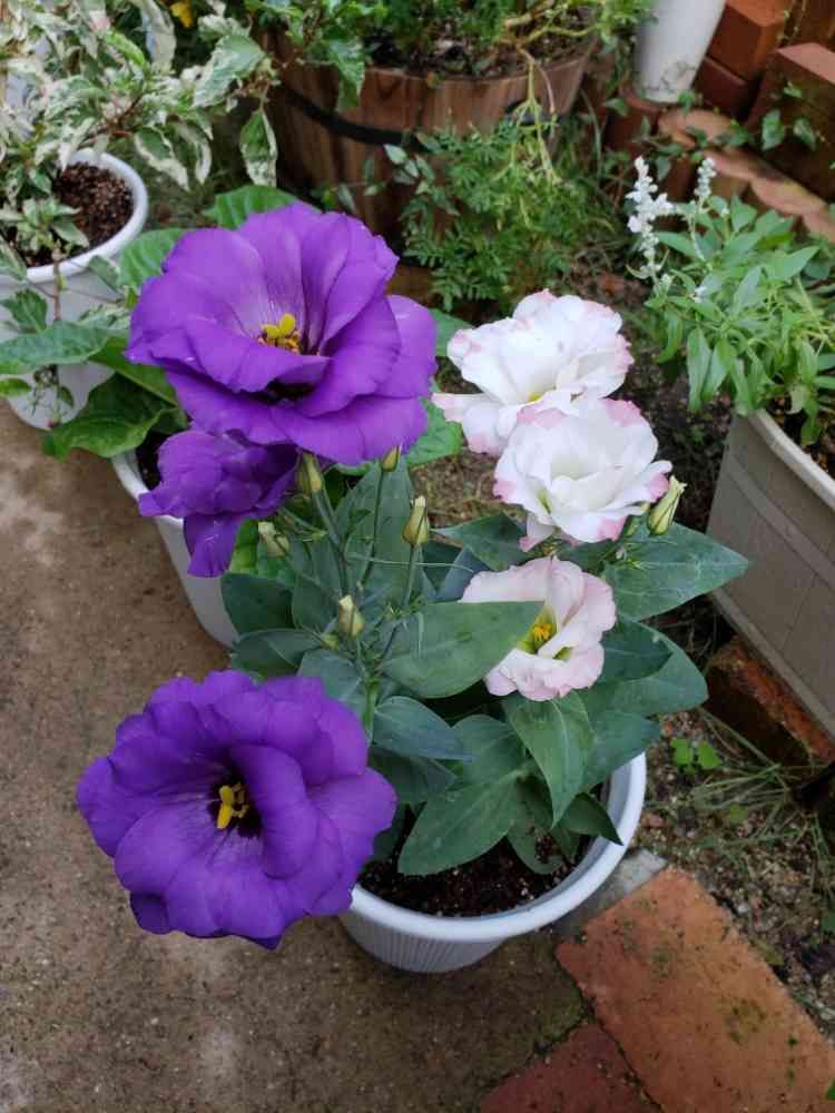 とってもきれいだったので、即、購入しました‼️ 色あわせで白にピンクの縁取りのトルコキキョウが濃い紫とあうので、組み合わせました。