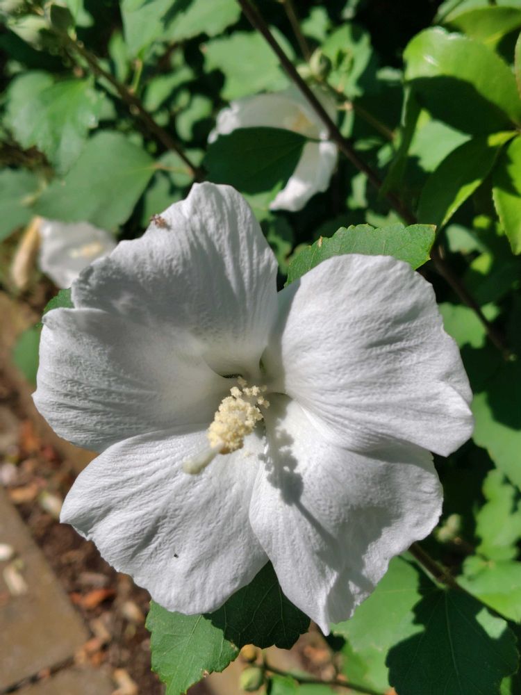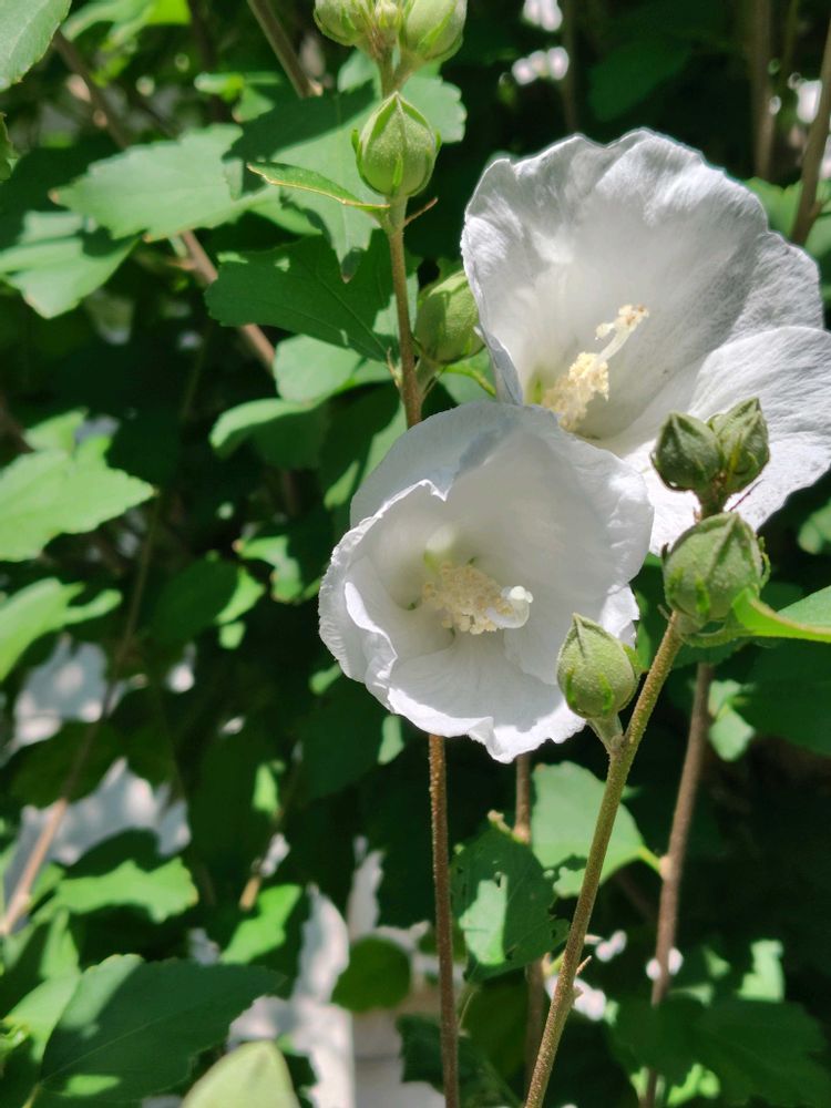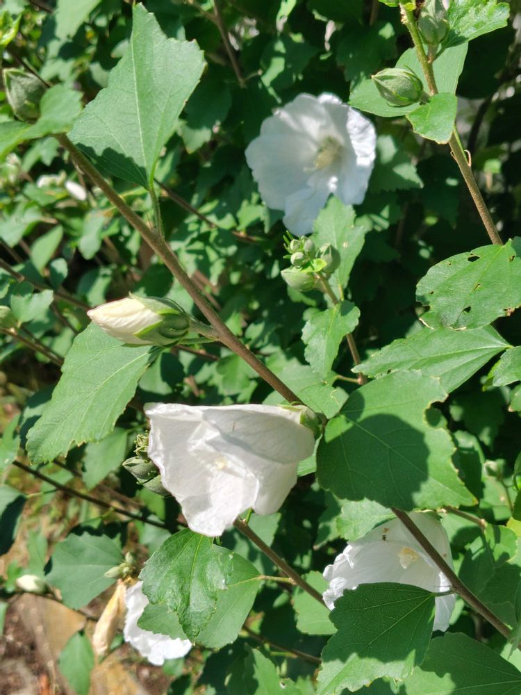 この木は春に強剪定されたが、このように見事に咲いてくれました。どのムクゲも、今年の夏は猛暑なので、8月には開花を休んでいた木も、9月にはまた咲き始めました。