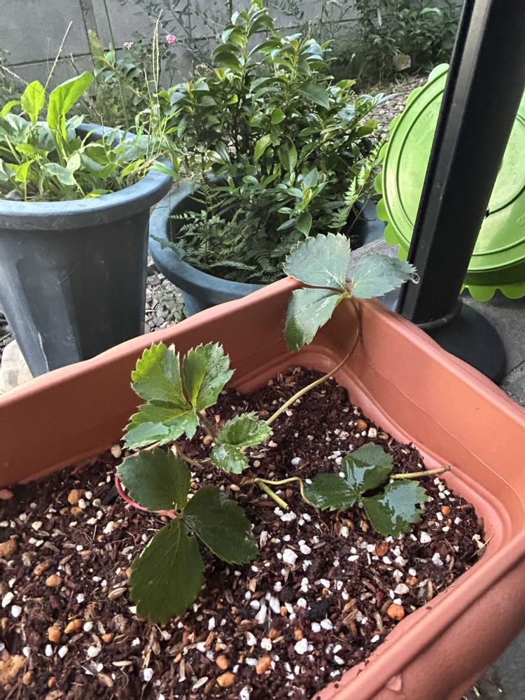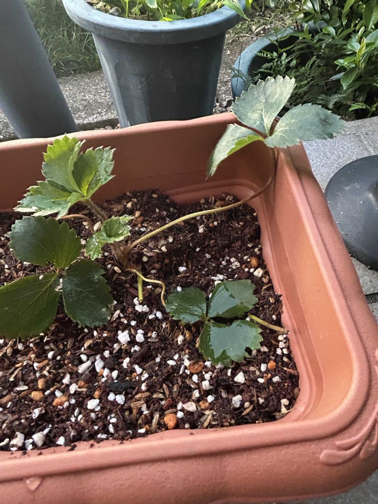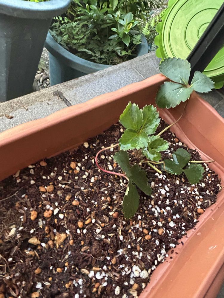 4日前、敷地内の雑草抜きしてたら、地植えで増えてたイチゴも抜いてしまったので、プランターに植え替えました。