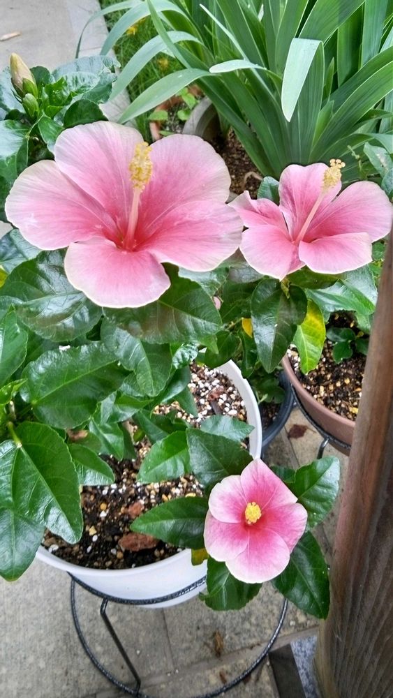 今日の我が家のハイビスカス🌺たちの開花の様子は、これら3種6輪でした🥰🥰🥰