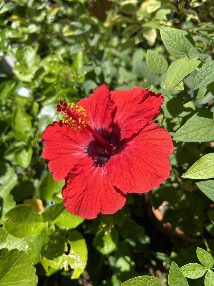 渋めの赤に真ん中が黒のかっこいいハイビスカス🌺