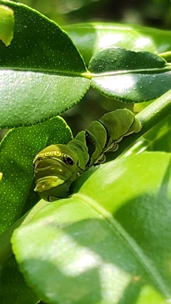 二枚目はコブミカンの葉を食べることを許されたクロアゲハの幼虫です。大勢で食い散らかしすぎたので山椒の木に流刑予定です。