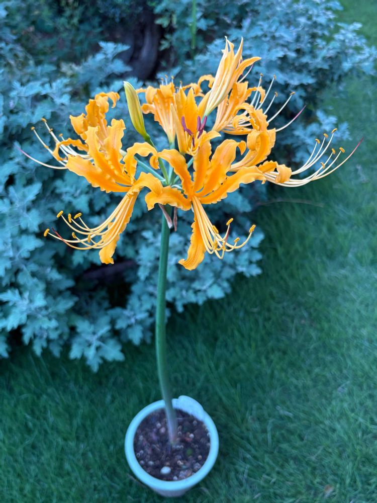 写真だと分かりづらいですが、彼岸花の2本分くらいありそう茎が1m近く伸び、大人の手でパーにしたよりも大きな花を咲かせました!