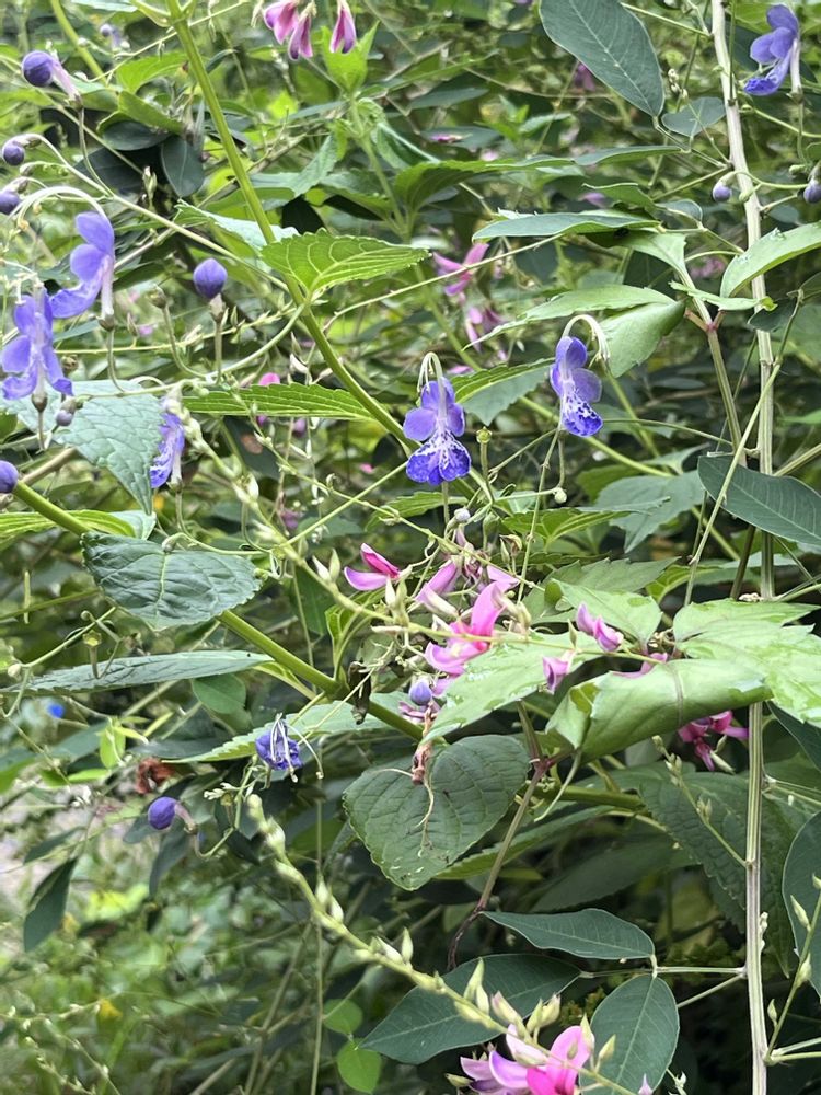 🩷🤍ツリフネソウの葉っぱなどはもう虫食いだらけなんですが、🩷萩や💜雁金草は無傷で、虫にもお好みがあるようでなかなか不思議な光景ですね🤭