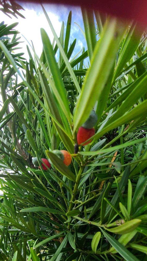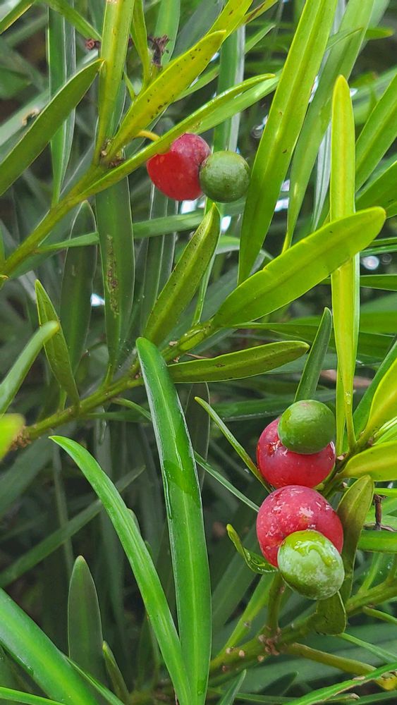 イヌマキの実、小さな串刺しだんご🍡のようで、可愛いですね🟢🔴❗