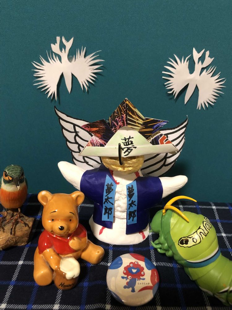 ⑥夢太郎のシラサギは、紙を切り抜いて作りました。紙吹雪も有れば良かったです。🤭