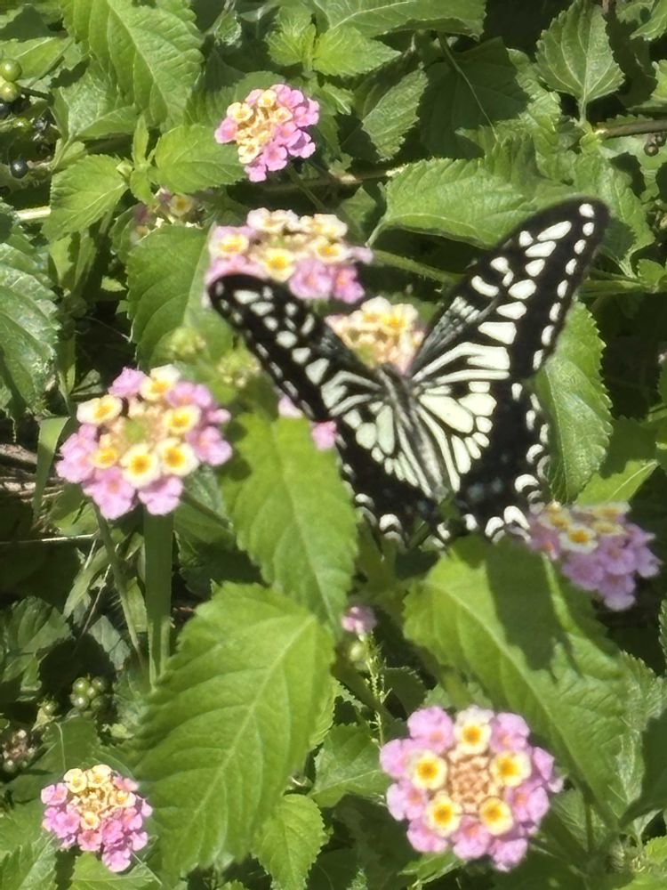 先日のお休みの時の散歩で出会ったランタナ。植えてはいけない花らしいけれど、可愛い花だしついつい植えちゃいそう。でもそれは後の祭り。繁殖力すごくて大変と言うことで、職場の花壇では植えてはダメになってます。