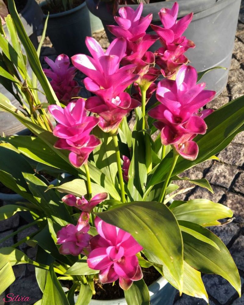 ♣️クルクマ属(ウコン属)の仲間には、ウコン(Curcuma longa)のように食用・薬用として利用される種類が多くあるほか、クルクマ・ペティオラータ(C. petiolata)など花を観賞する目的で栽培される種類もいくつかある。白やピンク色の美しい苞は重なってトーチのように見え、本来の花は苞の間に隠れるように目立たず咲く。♣️