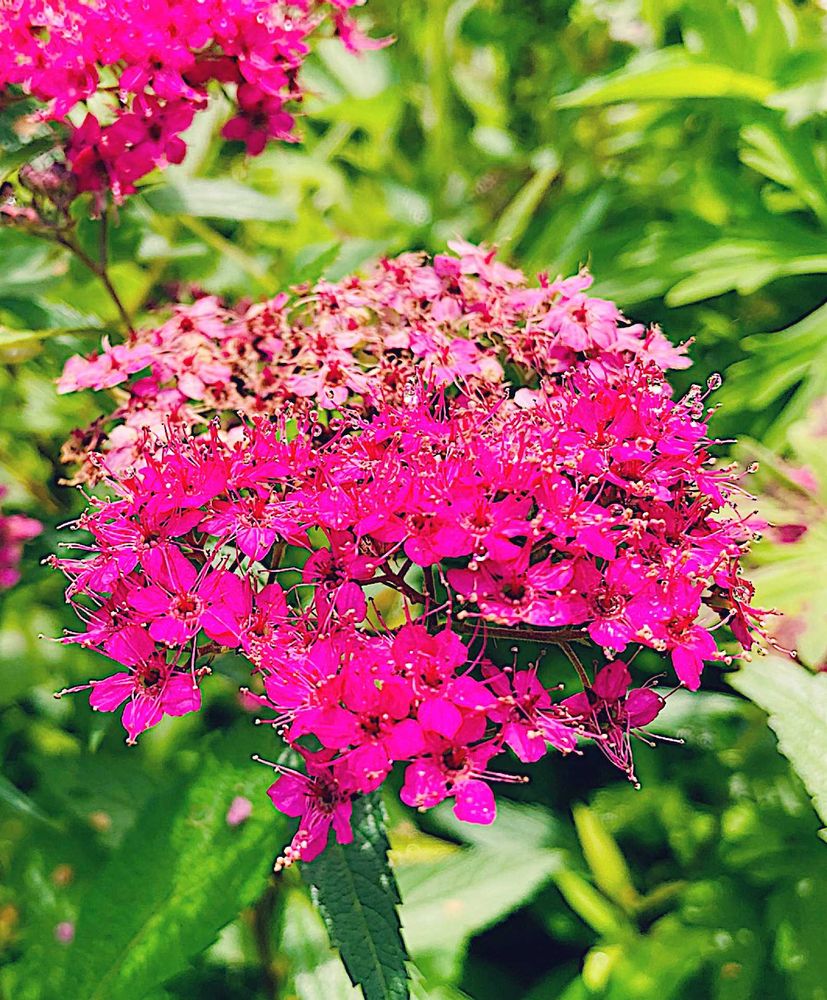鮮やかな濃紅色の「下野(シモツケ)」でおはようございます🩷🌿🩷