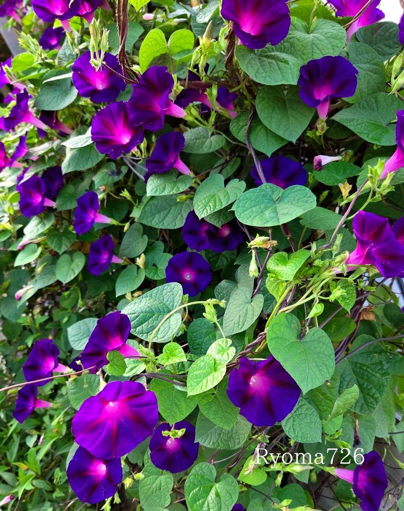 きれいな紫色のアサガオが たくさん咲いていました🟣