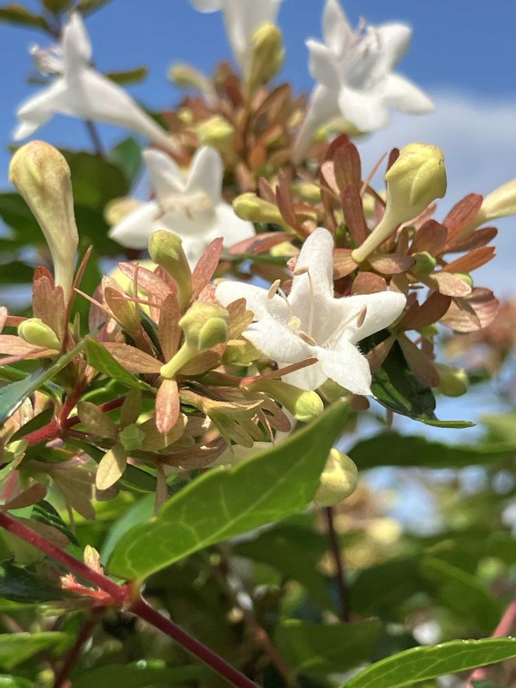 アベリア、青空に映えて綺麗です。