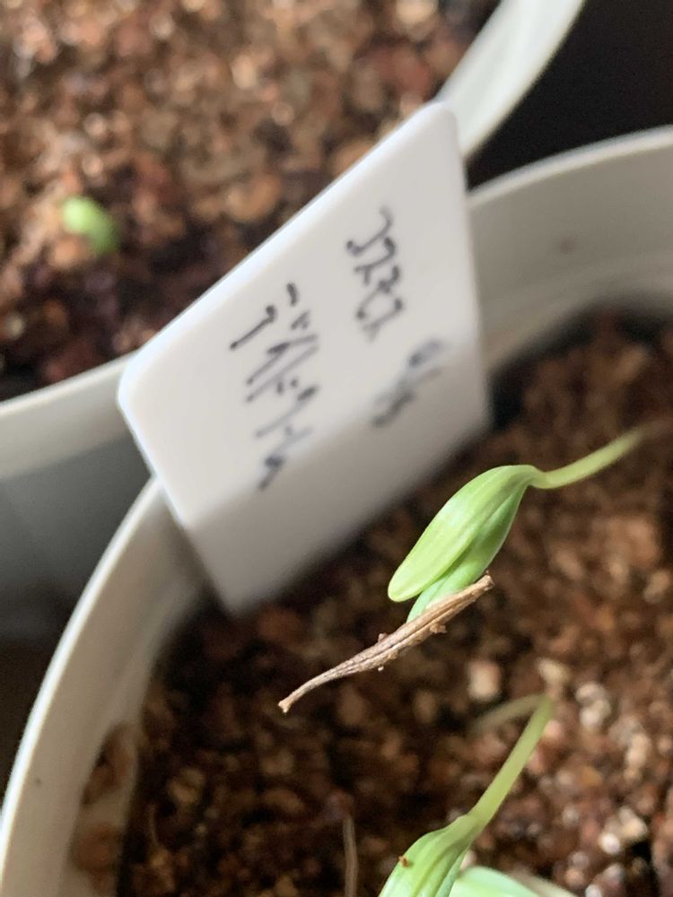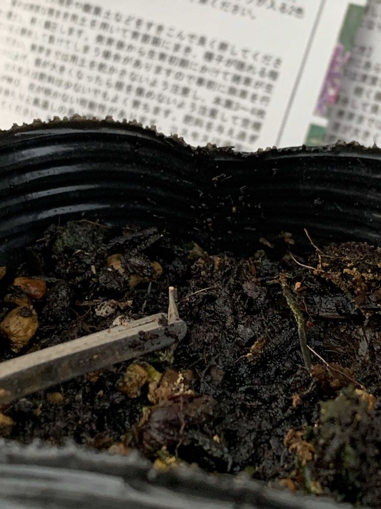 ②①の発芽の時の向きを参考に種を縦に、土は普通の培養土で植えてみました