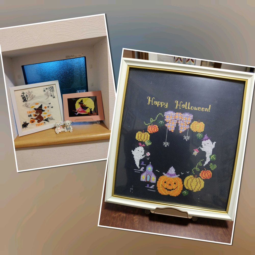 3枚め…玄関や明かり取り窓をハロウィン🎃仕様に…⤴️⤴️