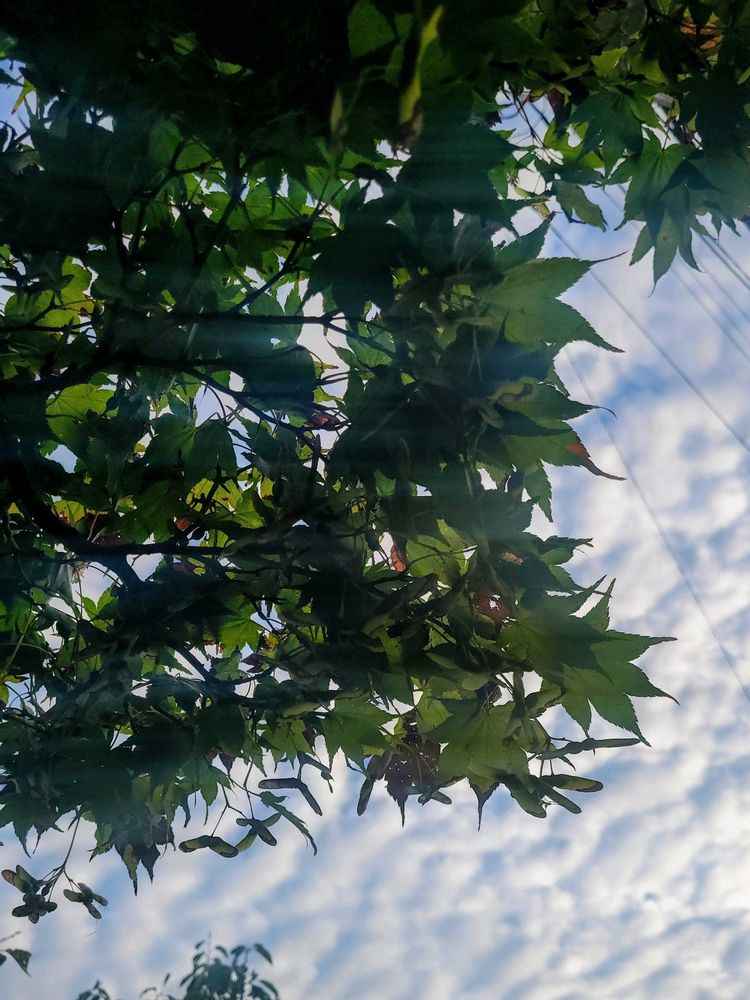 緑のモミジの葉っぱ𓂃🌿𓈒𓏸と空の雲☁️素敵に撮れました🤳パチリ