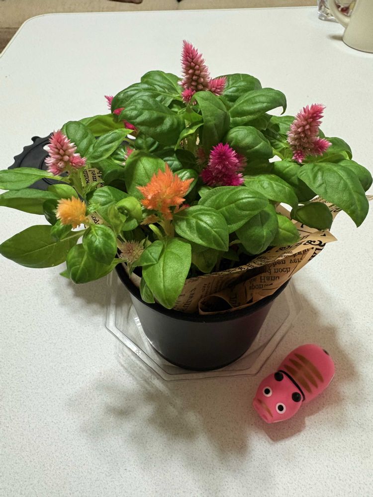 昨日、スーパーからお連れしたセロシア(ケイトウ)とっても可愛い色合いです😍