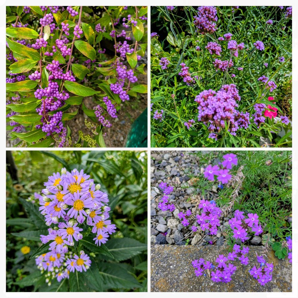 コムラサキ、三尺バーベナ(ヤナギハナガサ)、紫苑、バーベナ。