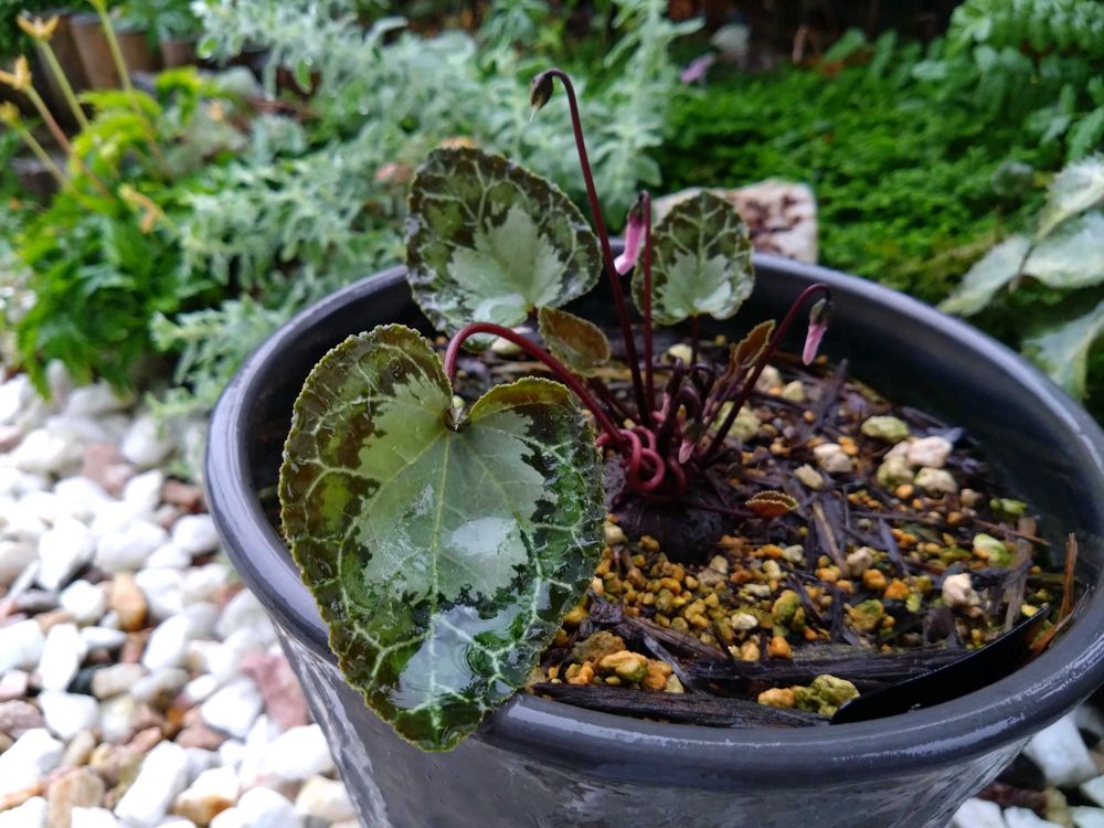 せっかく咲いた原種シクラメン、昨日と今日の雨でだいぶ花が落ちました🥀🥲